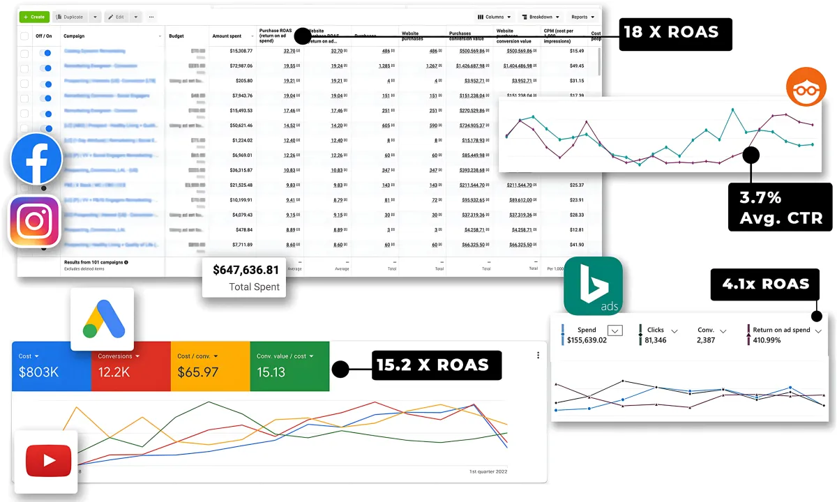We specialize in Google Ads, Meta Ads (Facebook & Instagram), TikTok Ads, YouTube Ads, LinkedIn Ads, and Snapchat Ads to help you reach your ideal audience.